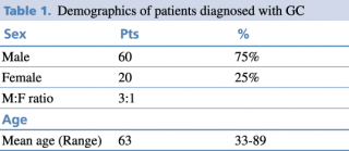 Typically, there is a higher incidence of gastric cancer in men compared to women, as indicated by the demographic data of our study which is concordant with other studies.5 Other studies suggest that the gender disparity is not statistically significant among individuals below the age of 45.6 The difference is observed in older age groups, reaching its peak in the 65-69 age range, where the male-to-female ratio is reported to be 3:1. An increase in the incidence of gastric cancer in women was observed when compared to studies conducted in previous years.7