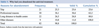 Table 2. In general, what used to be the reasons leading patients’ abandonment of ARV treatment?